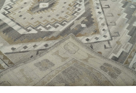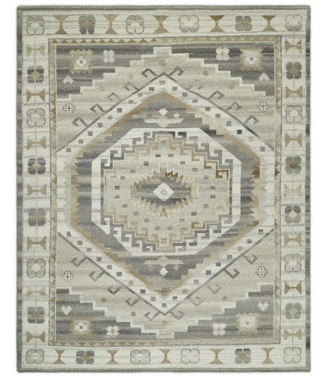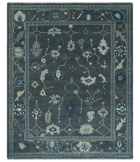 8x10, 9x12, 10x14 and 12x15 Hand Knotted Black, Beige and Silver Traditional Oushak Wool Rug