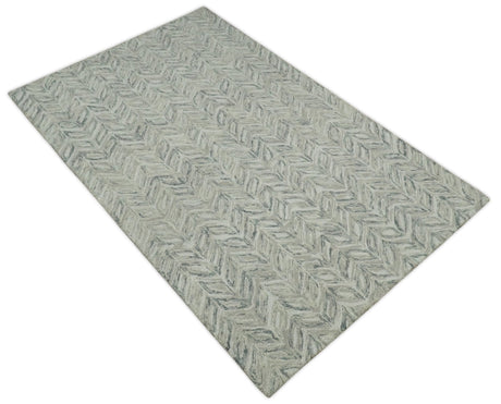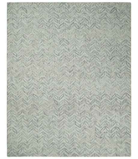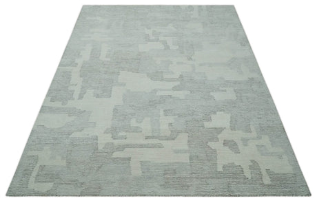 Hand Tufted Ivory, Silver and Blue Modern Abstract Custom Made wool Rug