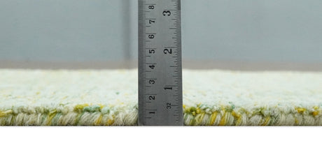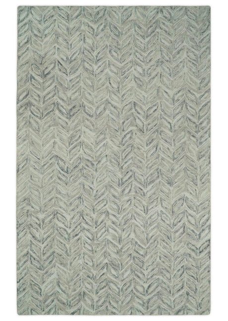Custom Made Solid Moss Green Ivory and Gold Abstract Hand Tufted Natural Wool Area Rug