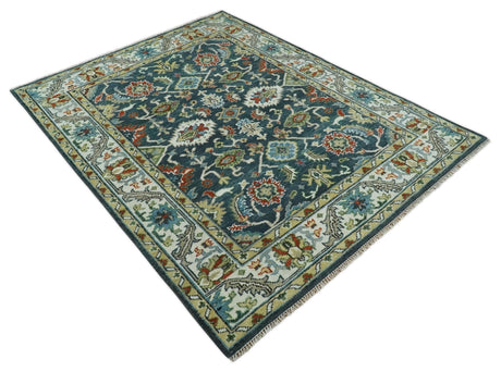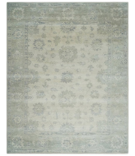 Hand Knotted Green and Ivory Traditional Oriental Oushak Custom Made Wool Area Rug