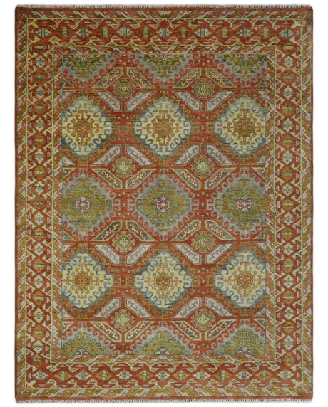 Hand Knotted Rust and Beige Traditional Oushak Multi Size Wool Area Rug