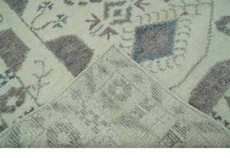 Hand Knotted Beige and Ivory Floral Traditional Traditional Oushak Multi Size Wool Area Rug