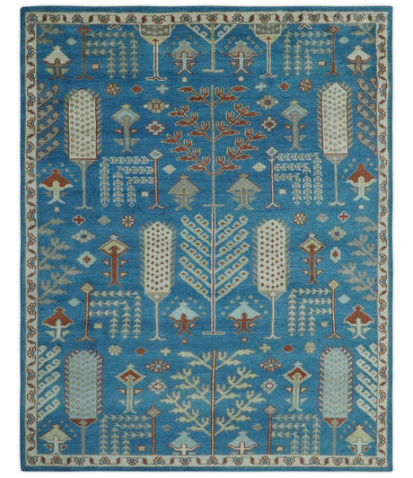 Tree of life Traditional Floral Blue, Ivory and Brown Hand Knotted Custom Made Wool Area Rug