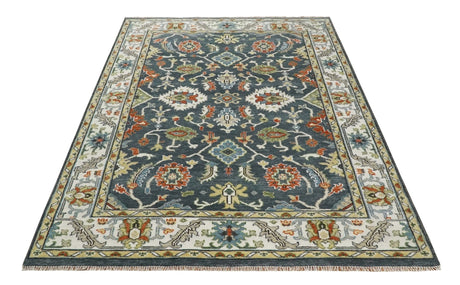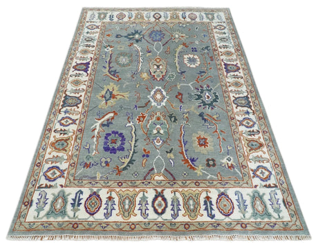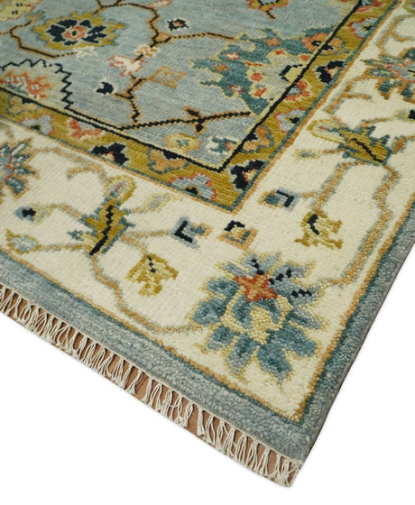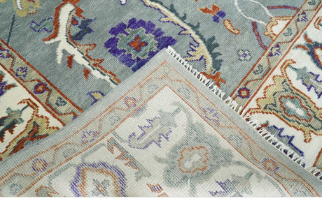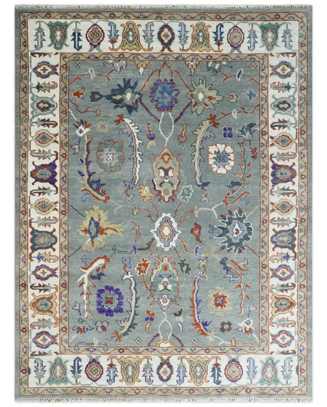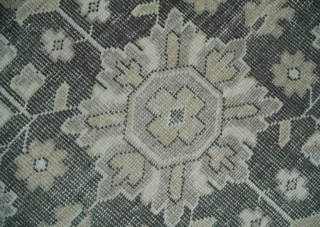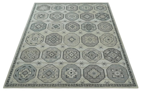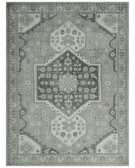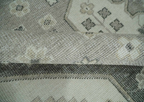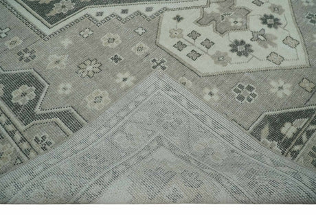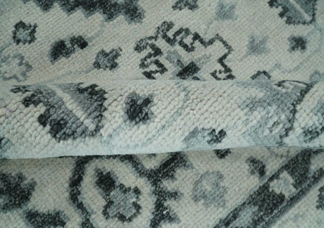 Hand Knotted Gray and Ivory Traditional Oriental Oushak Wool Area Rug