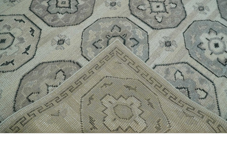 Hand Knotted Multi size Ivory, Silver and Charcoal Antique Turkish Oushak Wool Area Rug