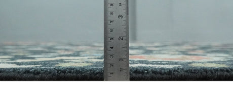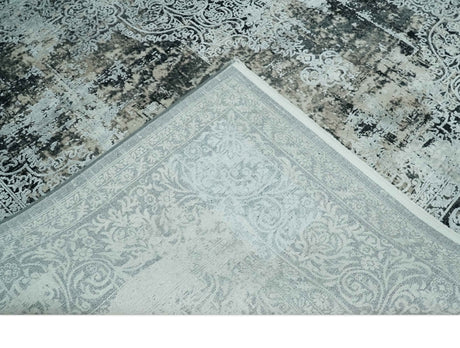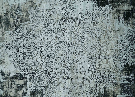 Black, Beige and Silver Antique Finish, Vintage look, Art Silk Area Rug, Living Room Rug