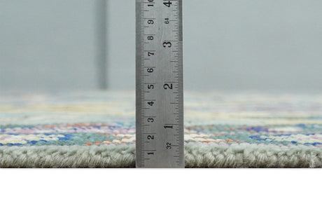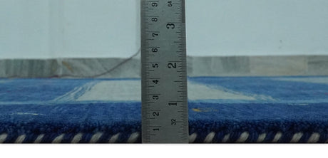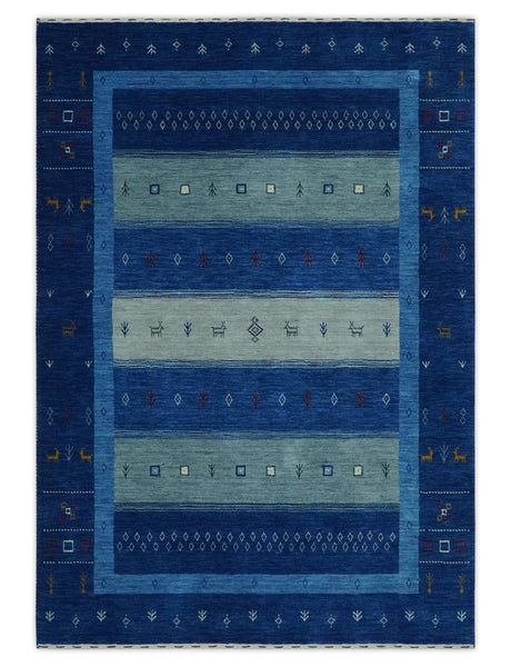 Blue, Gray and Silver Stripes design Tribal Gabbeh Traditional Custom Made Wool Area Rug