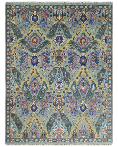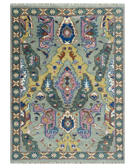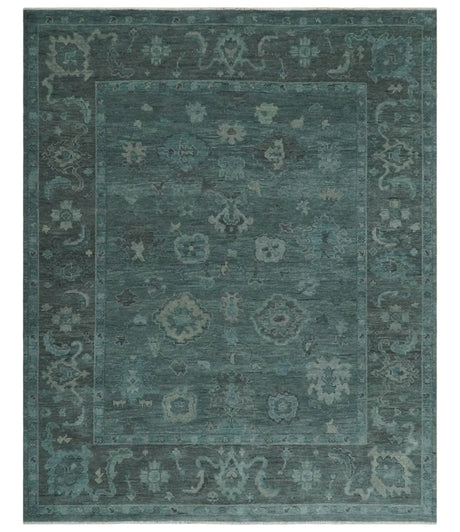 Hand Knotted Traditional Oriental Oushak Antique Style Green Wool Area Rug