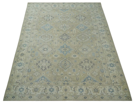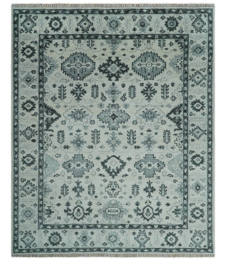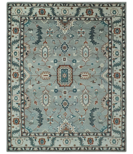 Custom Made Hand Knotted Silver, Teal, Ivory and Brown Traditional Oriental Oushak wool area Rug