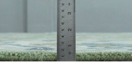 Custom Made Green, Ivory and Silver Traditional Turkish Hand Knotted Wool Rug