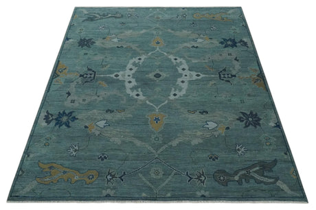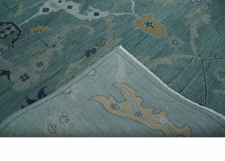 Hand Knotted Traditional Turkish Teal Oushak Wool Rug