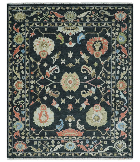 Modern Hand Knotted Black and Multicolor Traditional Oushak Custom Made Wool Area Rug