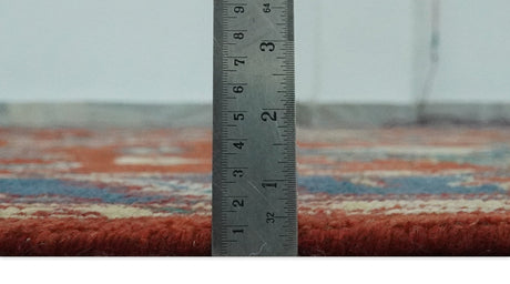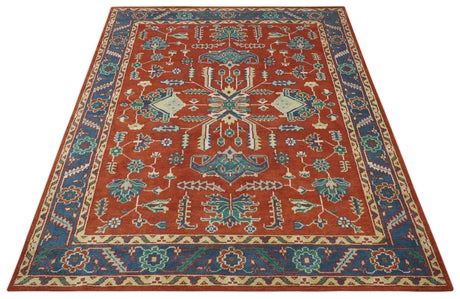 Rust, Ivory and Blue Traditional Mamluk design Hand Knotted Custom Made wool Area Rug