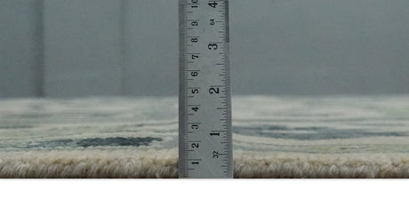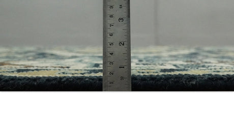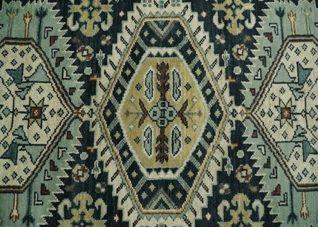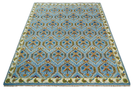 Custom Made Hand Knotted Blue, Ivory and Olive Traditional Oriental wool Area Rug