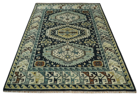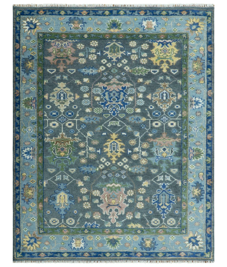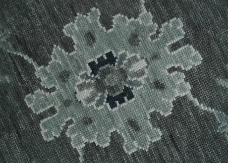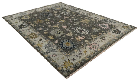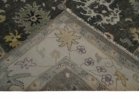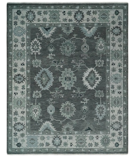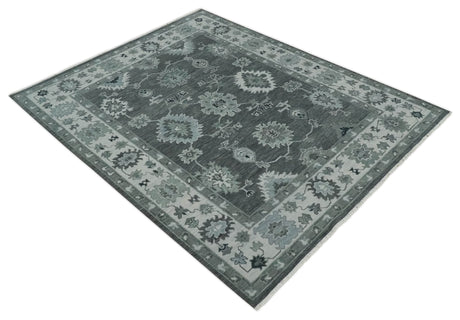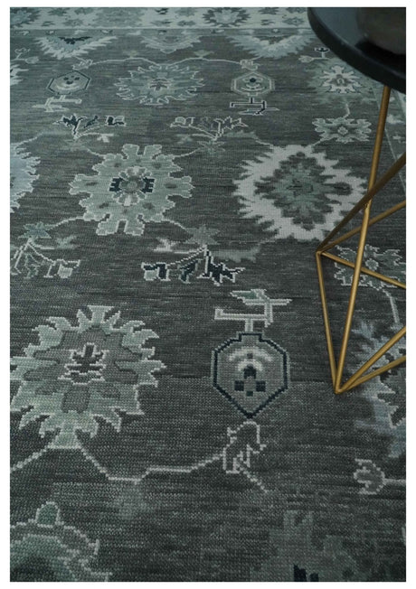 Antique look Charcoal, Ivory and Silver Hand knotted Traditional Oushak Custom Made wool Area Rug