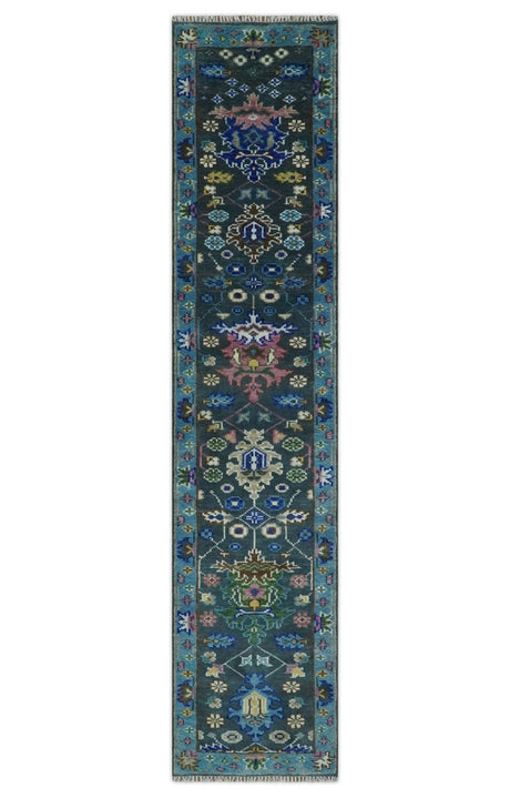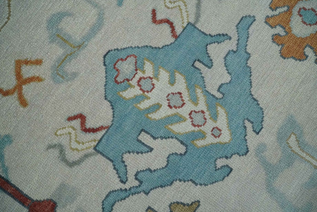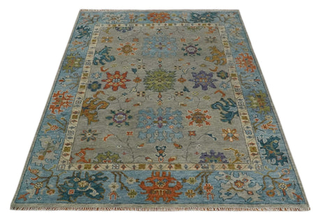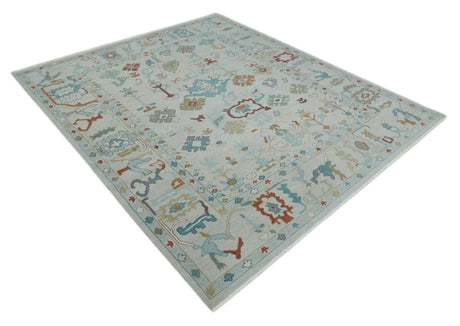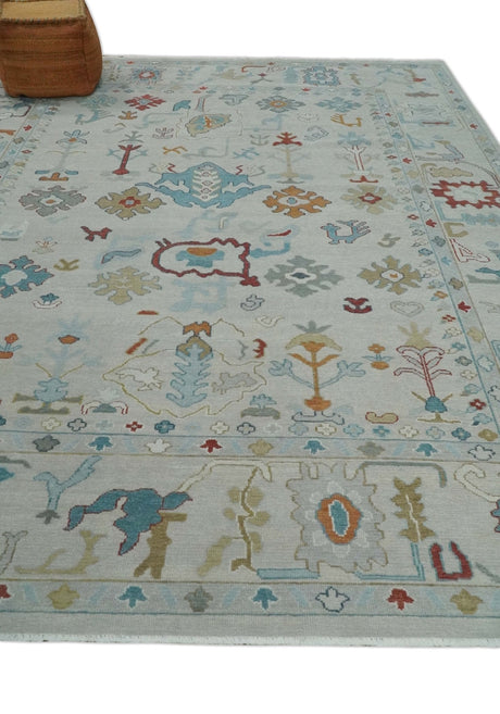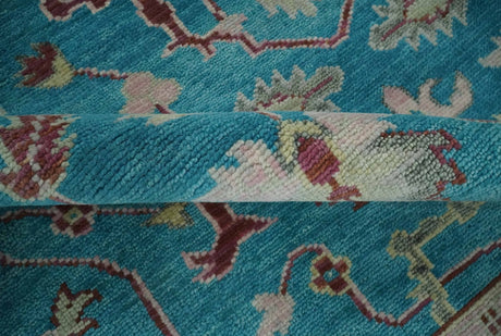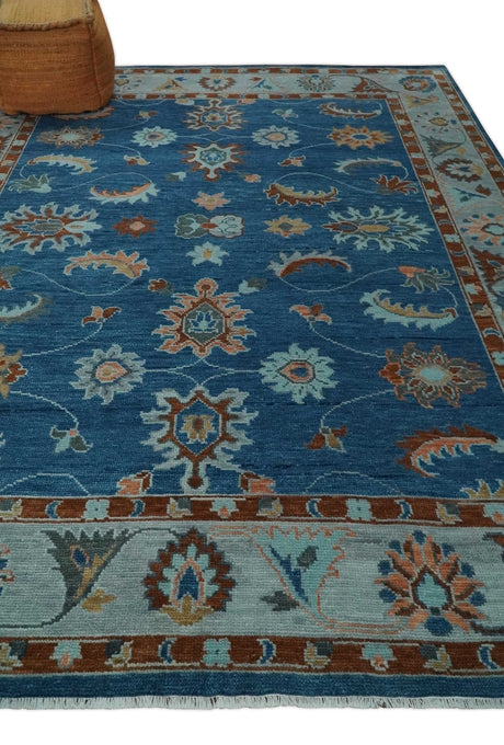 Blue, Rust and Aqua Hand Knotted Floral Multi Size Oushak Wool Area Rug
