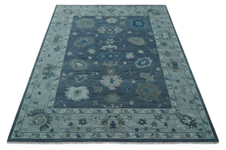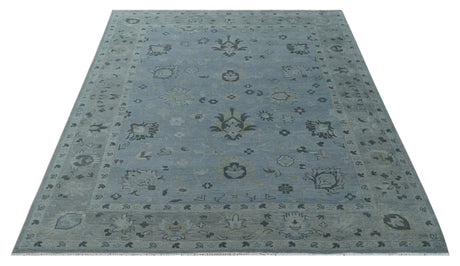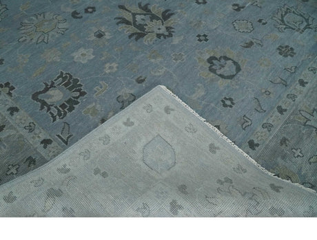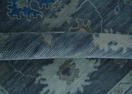 Antique style Blue, Silver and Charcoal Hand Knotted Oushak Wool Area Rug