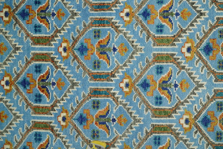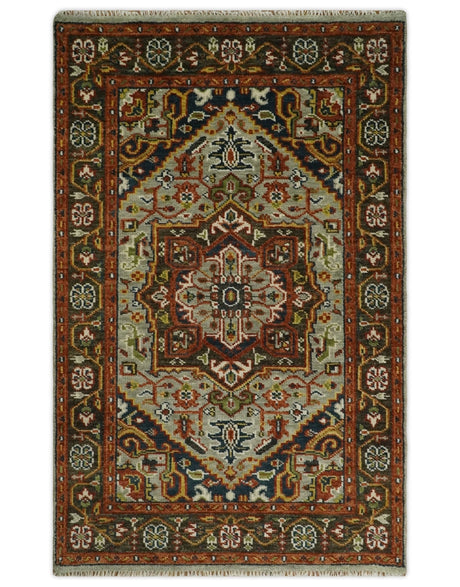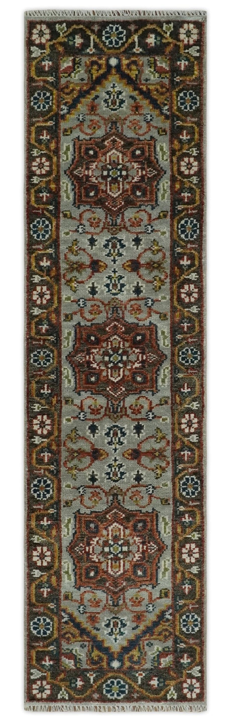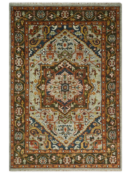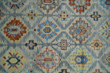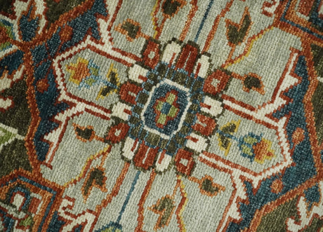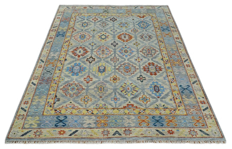 Vibrant Colorful Silver, Blue, Rust and Mustard Traditional Hand Knotted Custom Made Wool Area Rug