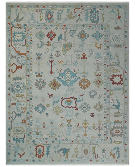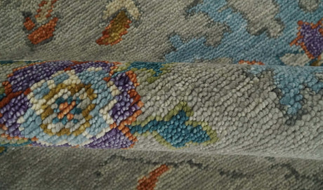 Hand Knotted Gray and Silver Traditional Multi Size Oushak Wool Rug