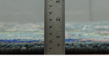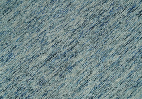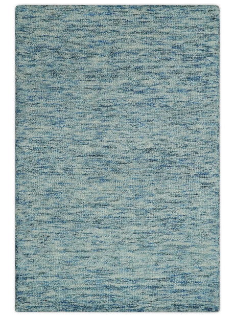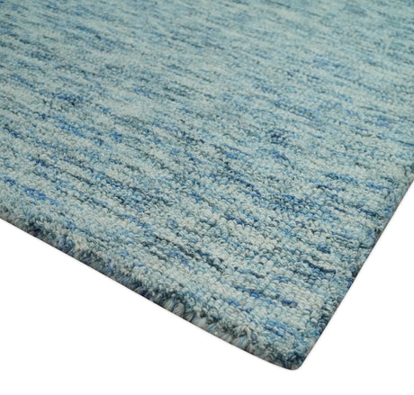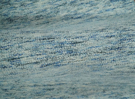 Custom Made Blue and Ivory Shaded Solid Wool Hand Woven Layering Area Rug