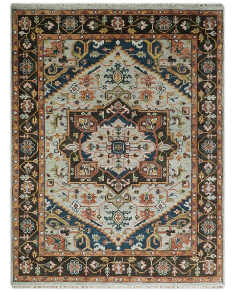 Blue and Brown Traditional Antique look Heriz Serapi Hand Knotted Custom Made wool Area Rug