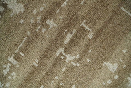 Custom Made Neutral Earthy Brown and Beige Chic Hand Knotted Natural Wool Minimal Area rug