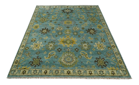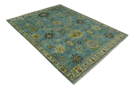 Hand Knotted Teal and Gold Traditional Oushak Multi Size Wool Area Rug