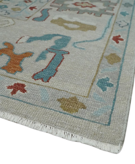 Hand Knotted Ivory Traditional Vintage Style colorful Multi size Oushak Wool Area Rug