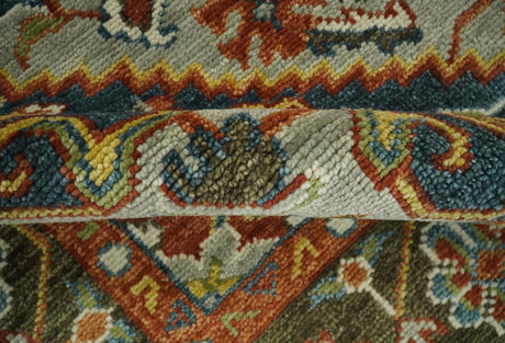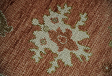 Hand Knotted Rust, Olive and Ivory Traditional Oushak Vintage Style Wool Rug
