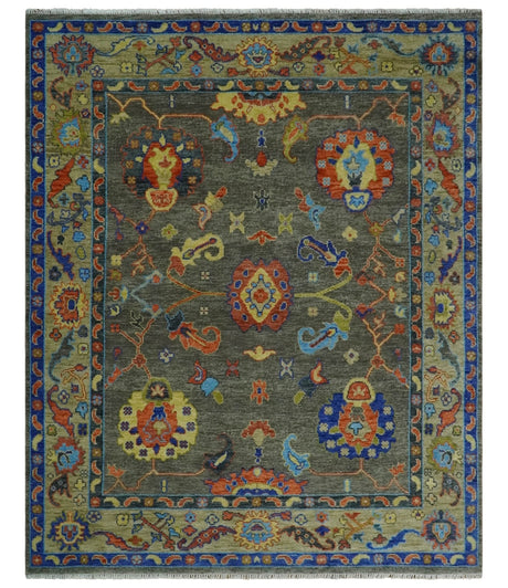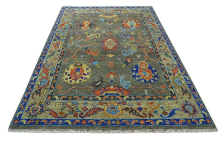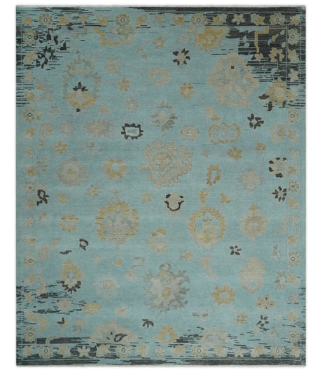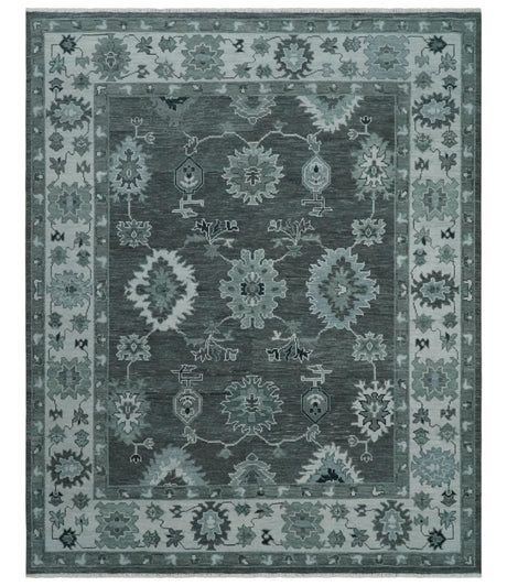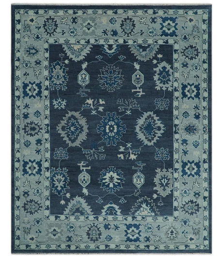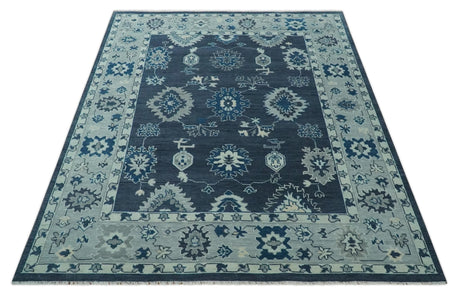 Antique Blue Charcoal Hand knotted Traditional Multi Size Oushak Wool Area Rug