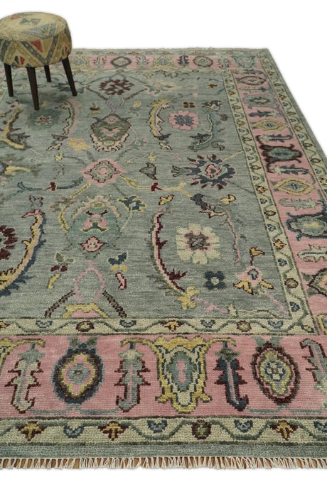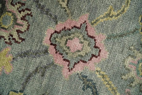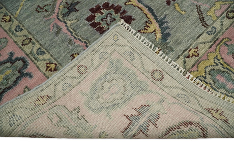 Antique Hand Knotted Green and Pink Traditional Oushak Multi Size Wool Area Rug