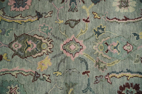Green and Beige Colorful Wool Hand knotted Traditional Oushak Multi Size wool Area Rug