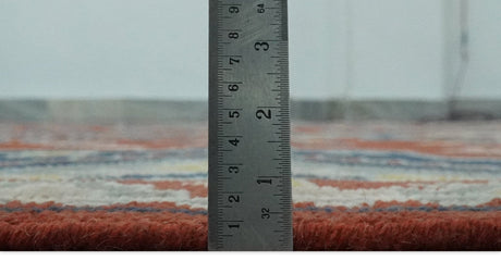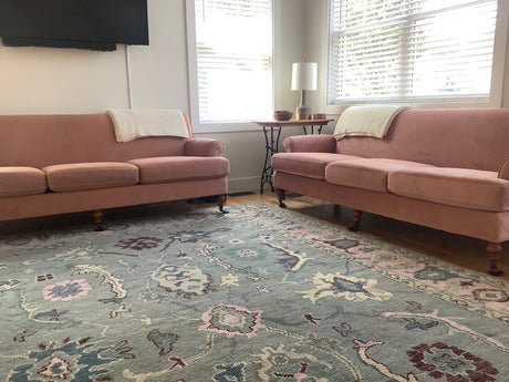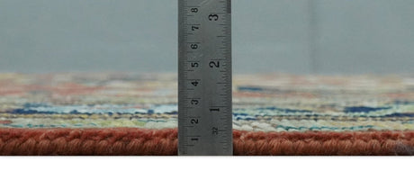 Custom Made Low Pile Hand Knotted Peach and Blue Traditional Design Wool Area Rug