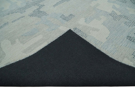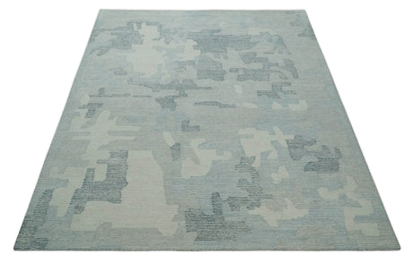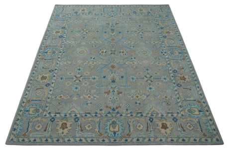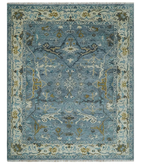 Hand Knotted Blue, Silver and Ivory Traditional Oushak Vintage Style Wool Rug