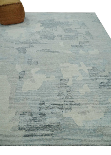 Custom Made Hand Tufted Ivory, Silver, Gray and Charcoal Modern Abstract Design Rug