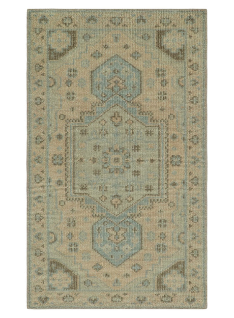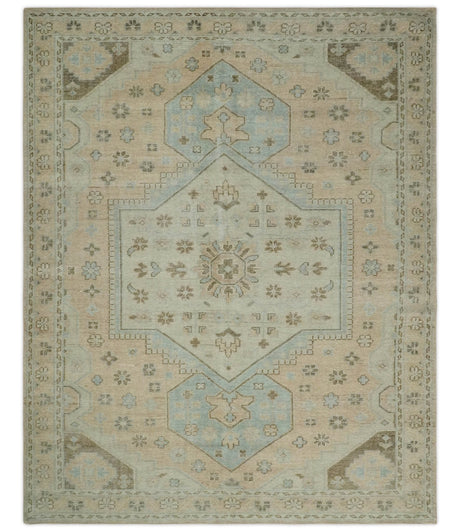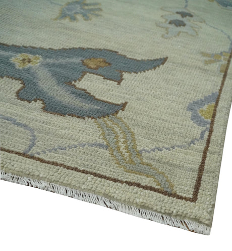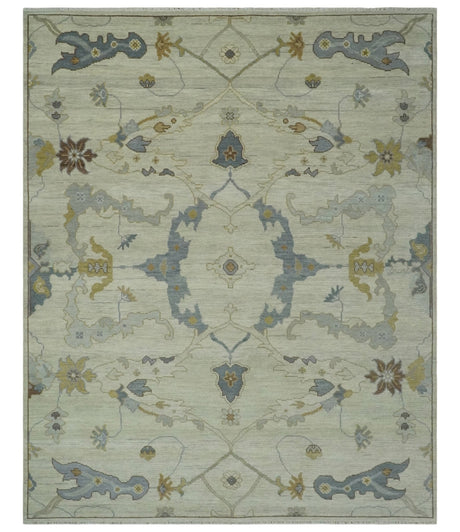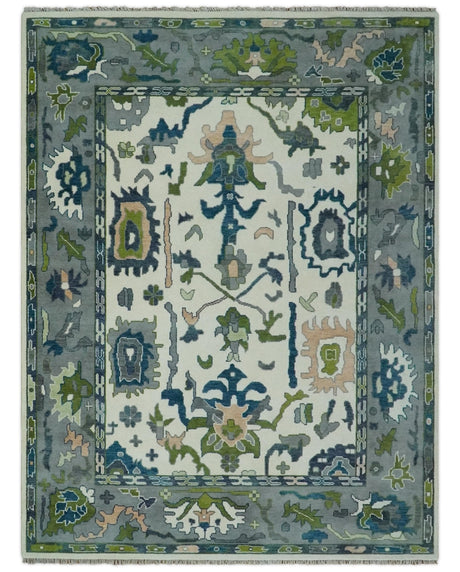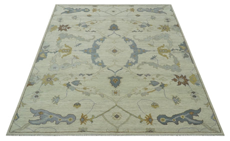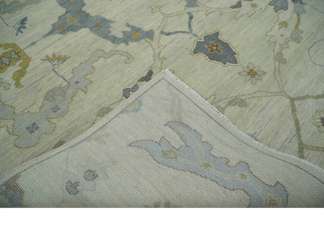 Custom Made Ivory, Gray and Green Hand knotted Traditional Oushak Wool Area Rug