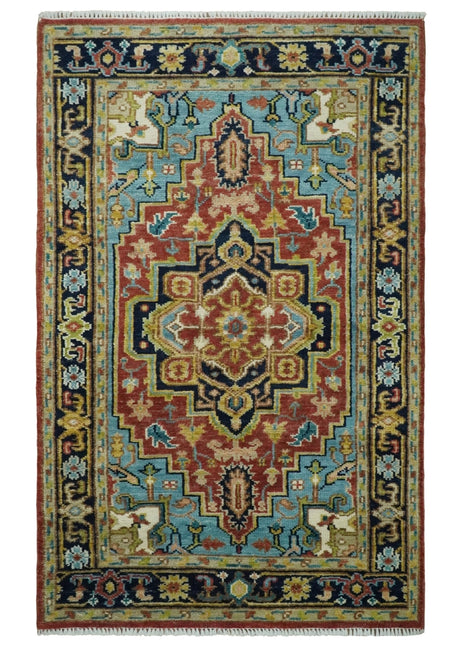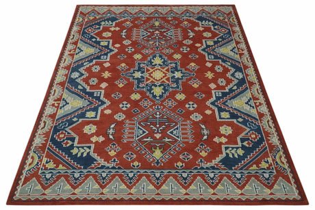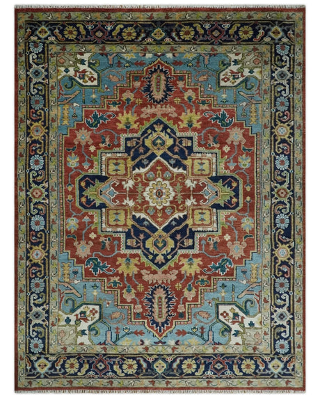Custom Made Red, Blue, Gray and Mustard Traditional Hand knotted wool Area Rug