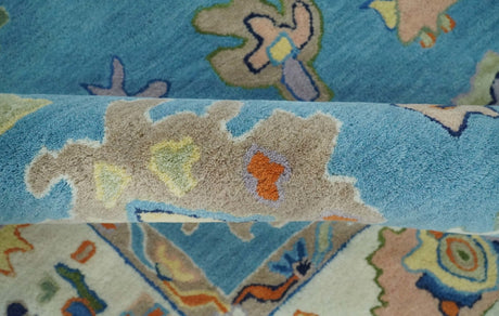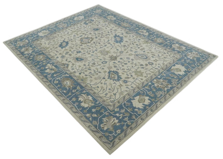 Custom Made Blue and Ivory Antique Style Hand knotted Oriental Oushak wool Area Rug