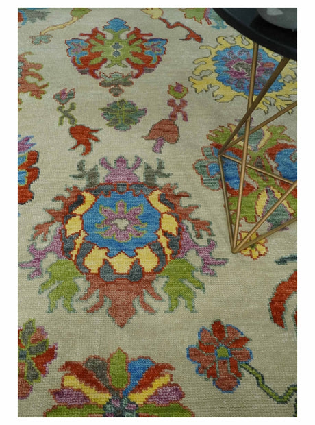 Custom Made Hand Knotted Beige with multicolor Traditional Oushak Wool area Rug