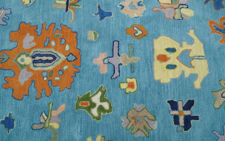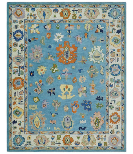 Hand Tufted Blue and Ivory Multi Size Modern Colorful Oushak Rug, Kids, Living Room and Bedroom Rug