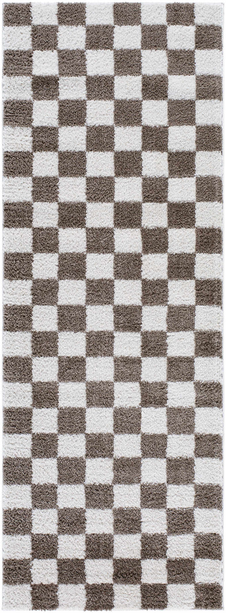 Canika Brown Washable Checkered Area Rug