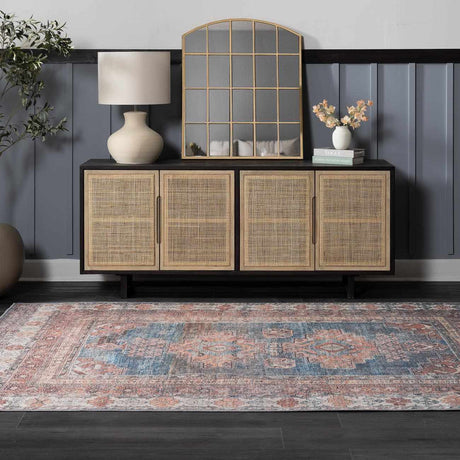 Baltinglass Rust & Blue Washable Area Rug - Clearance