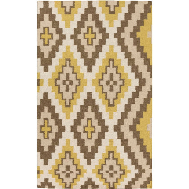 Elevate your home with the Ailey Global Olive Area Rug, a stunning blend of intricate global-inspired patterns and modern design. Featuring a striking combination of olive, light beige, cream, and light olive hues, this rug adds a bold yet sophisticated aesthetic to any room. Crafted from 100% wool in India, this handwoven masterpiece offers a flatwoven, no-pile construction that ensures both durability and effortless style. Whether placed in a living room, hallway, or office, this rug enhances any space with its timeless elegance.