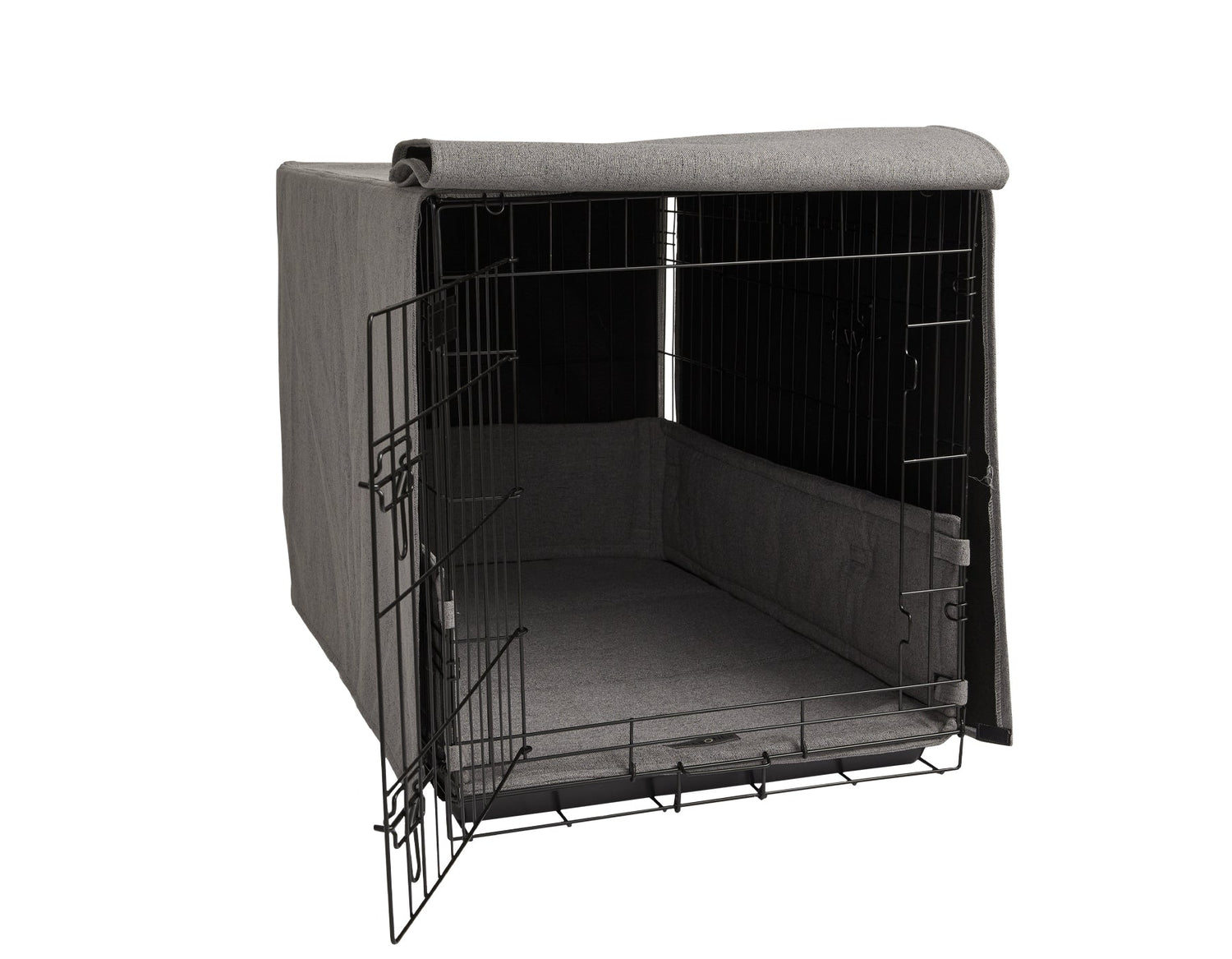 Our All in One Ultimate Crate Kit is ideal for welcoming home a new puppy or dog. This Crate Kit comes with a Collapsible Wire Dog Crate with Double Door and a 3-piece luxury accessory package that includes an outer cover, a 3" thick washable crate pad and a three-sided 1" bumper for the inside of the crate. Durable, washable and the ultimate in comfort for crate bedding.