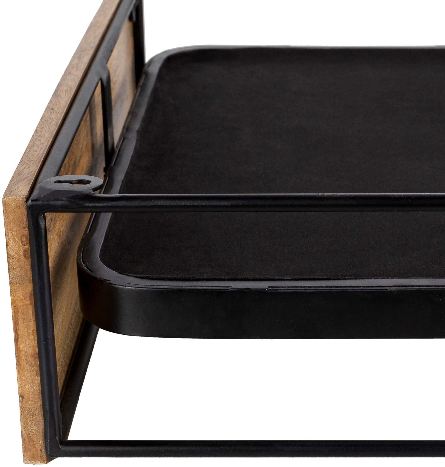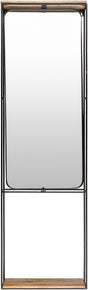 Make a statement in your home decor with the Altschwendt Modern Wall Mirror. This modern style mirror is crafted with a robust iron metal frame, lending it a unique and stylish industrial-chic aesthetic. Featuring a substantial size, this large rectangular wall mirror will be the perfect addition to any room, providing an elegant touch to your space. The vertical orientation makes it ideal for enhancing hallways, entryways, or for placing above a console table. Accented with manufactured wood shelving, the Altschwendt Mirror, made in India, is both visually striking and subtly functional.