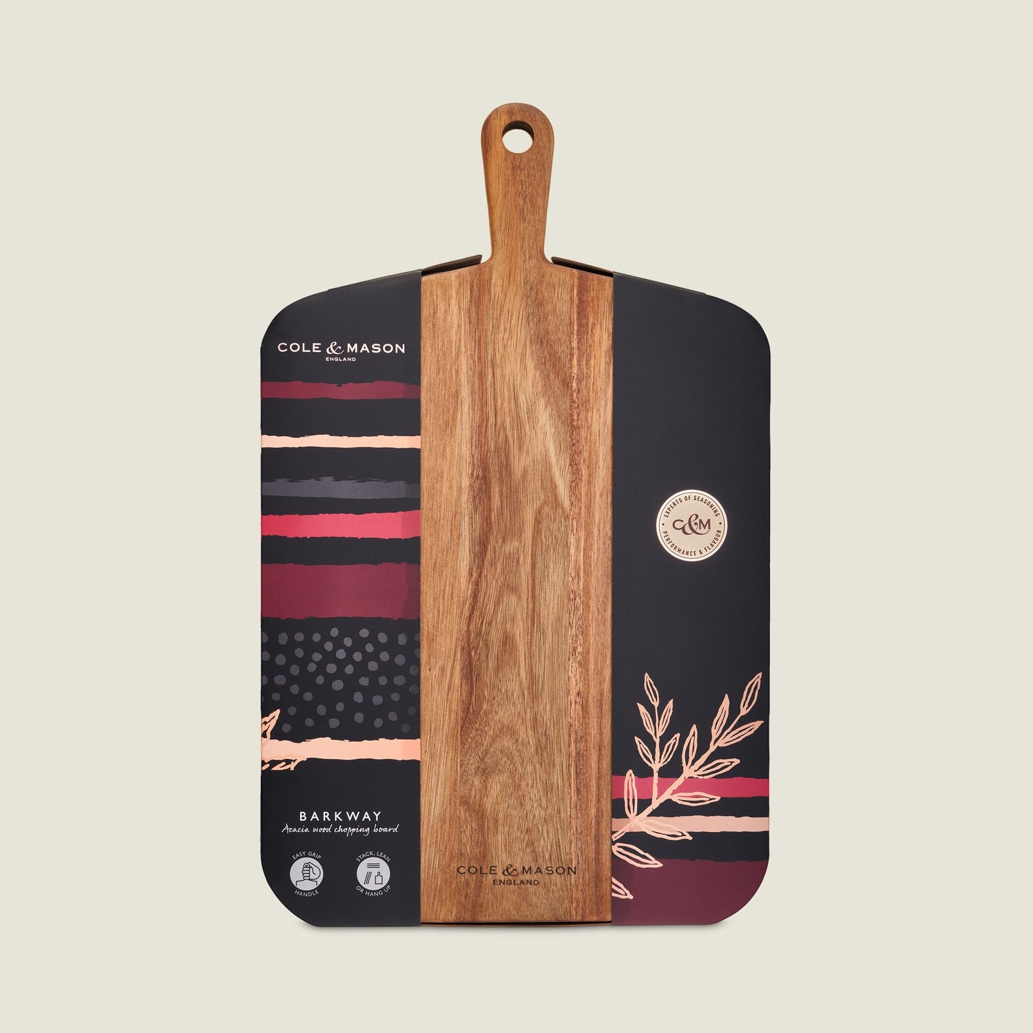 The Barkway Acacia Chopping Board is a beautifully crafted kitchen essential, made from premium-quality acacia wood for durability and long-lasting performance. This sturdy board provides a reliable surface for chopping, slicing, and dicing, while the natural grain pattern adds a rustic charm to any kitchen. The board's smooth finish ensures ease of cleaning and maintenance, making it perfect for both food preparation and serving. Whether used for cutting meats, vegetables, or bread, this chopping board is an elegant and practical addition to any kitchen.