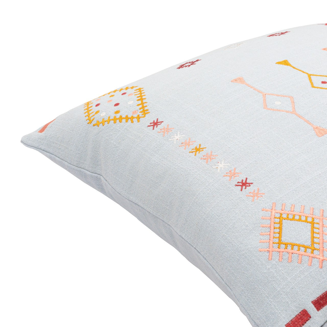 - Colors: Pale Blue, Saffron, Bright Pink, Garnet, White
