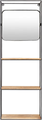 Bring a touch of Mid-Century Modern elegance to your home with the Faistenau Modern Wall Mirror, manufactured in the heart of India. This sleek and stylish piece is not only functional, but it also serves as a stunning decor accent that effortlessly enhances any space it's placed in. Featuring a unique design with a rectangular mirror set within a black metal frame and complemented by manufactured wood shelving, the Faistenau Mirror offers both utility and style.