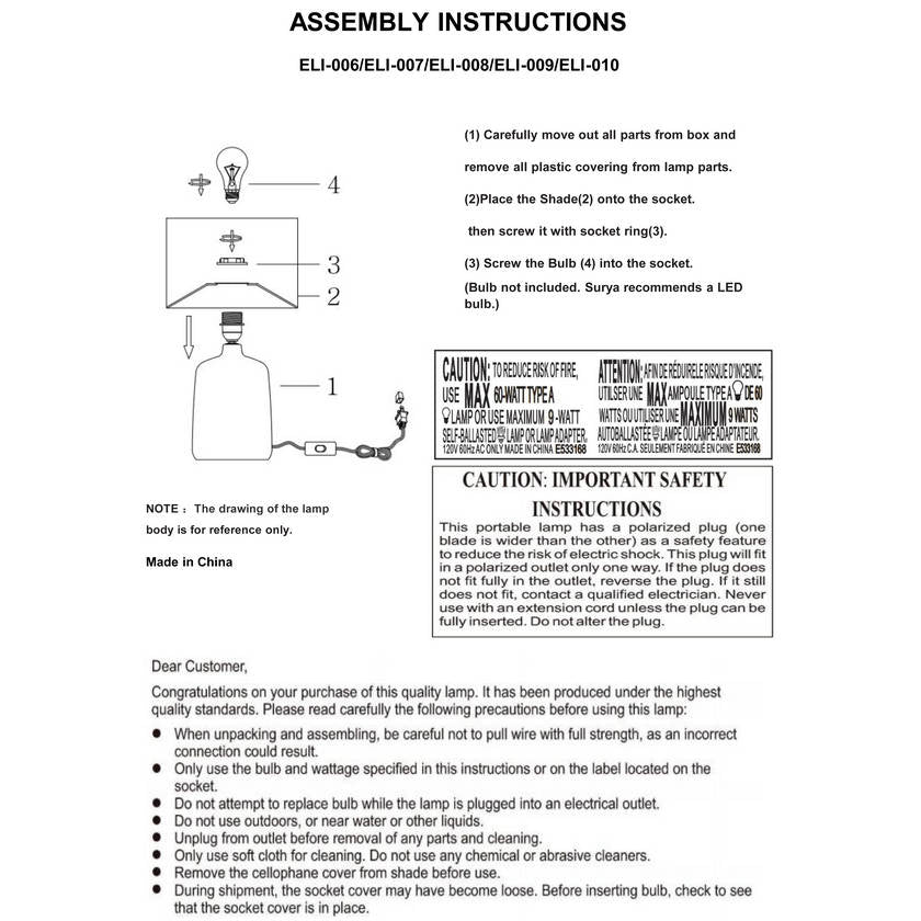 - Material: Body: Ceramic; Shade (Outside): Linen; Shade (Inside): Polyester