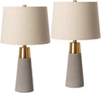 - Color: Body: Gray, Metallic - Brass; Shade (Outside): Beige; Shade (Inside): White; Finial: Metallic - Brass; Harp: Metallic - Nickel; Cord: Black